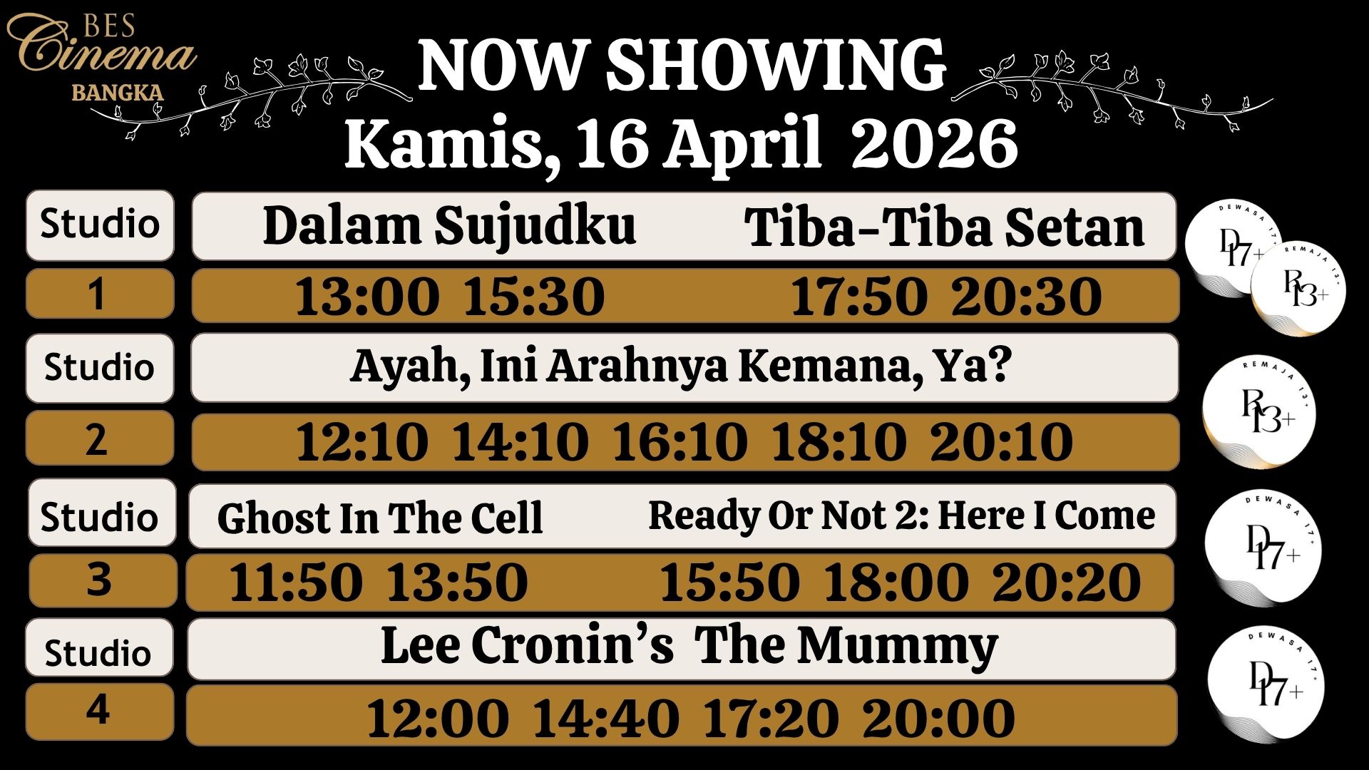 DALAM SUJUDKU 13:00 - 15:30 TIBA - TI=BA SETAN 17:50 - 20:30
